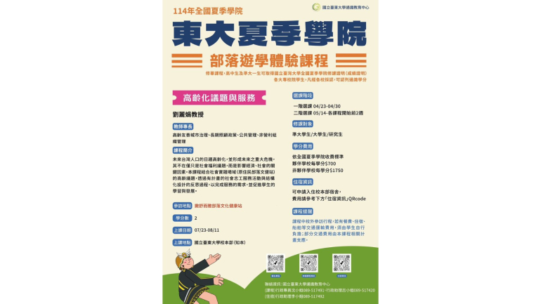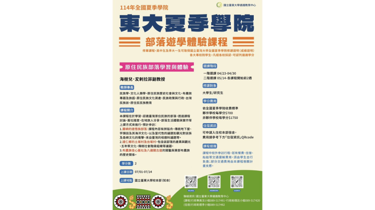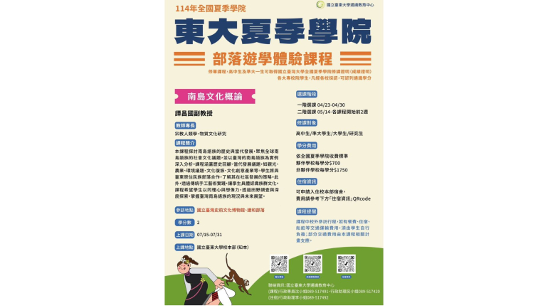 114國立臺東大學暑期夏季學院資訊