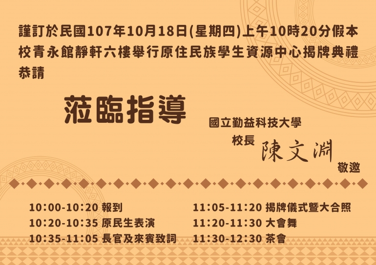 【活動消息】10/18(四)勤益科大原資中心揭牌活動